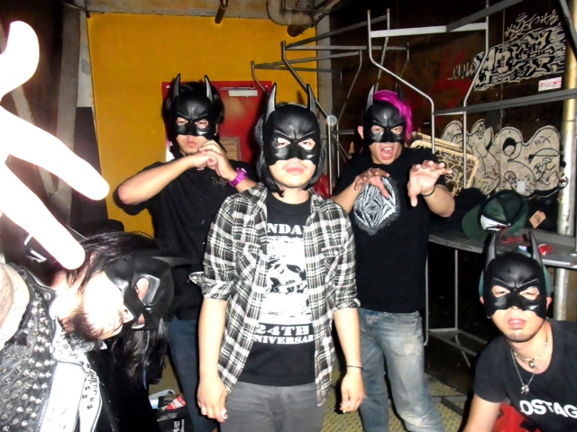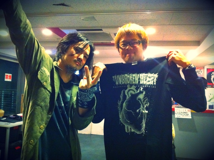 BBQ CHICKENSのツアーサポートで仙台に行ってきました。 失敗だったのは着替えを忘れて売り物のラグランを着て帰るハメになった事以外は最高でした。 BBQはこの日も最高だったよ。 1つ心残りだったのはピザオブデスのアベちゃんがいなかった事。 今度はロングツアーやりたいなぁ〜、なんて本気で思ってます。 【さかのぼってみます〜?】 10月半ば、十三ファンダンゴで企画をやらせてもらいました。 今月の残りのライブ、是非期待していて下さい。 で…なんだっけ。 ラスベガスちゃんのツアーに参加させてもらったんだったね。 滋賀のライブに来てた地元の高校生達 Scotlandのゴリも遊びに来てくれてTシャツを買ってくれました MEANINGのロンTやFACTのデザインを手がけてるユズルさんも来てくれました! で、次のMEANING企画はハロウィンなんだけど、 が!!! もし予約したけど来れなくなったって人がいたらお手数ですがキノトに電話を入れて下さい。 っていうか当日券も少しだったら出せるんじゃないかな(無責任発言) そして…その次のMEANING企画も決まってます。 出演してくれるのは 原爆オナニーズ ともう1バンドです。 このメンツは本当にヤバいと思うよ。 Lコードなので詳細はじき出ますのでお待ち下さい☆ そして…12月14日、平日ですが初めて名古屋で企画をやっちゃいます。 こっちの詳細は…まあまた追って。