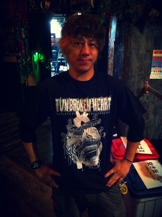仕事前にわざわざチャリティーTシャツを買いにきてくれたファンダンゴ村上君