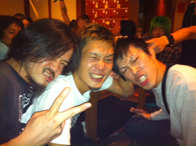俺らは何気にA.O.Wのレコ発をライブでお祝いできるのは実は初めてなのかな? そんなA.O.Wのライブは…壮絶の一言でした。w そういえばこの日は色んなハコでサーキットイベントがあったんだけど、 いや、だからなんで打ち上げに来てんだよ… いやいや、だから早く帰れって 翌日のイベントのために前乗りの田上先輩もなぜか打ち上げに合流。ファンなのでノリで撮らせてもらいました。 さよなら大地