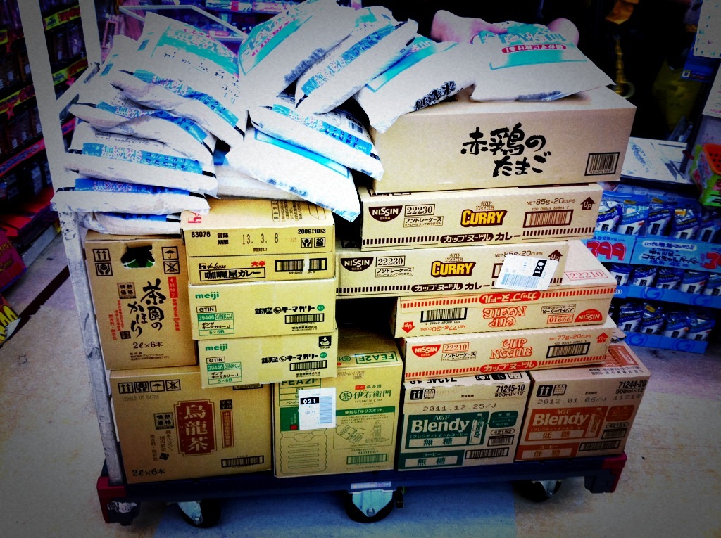 一応ハヤシさんの貯金箱も買っときました トミカや女の子向けのものや、ボールなどを大量に購入し車に詰め込み、物資と共に過ごす男、チンを迎えに行きました。 彼の家には大量の物資が届いていました。 今度はnumber twoのメンバー(イチゲとjr)がお米と集めてくれたお金を俺らに託してくれました。 ほんで、その足で今度はチンの元職場でトイレットペーパーとサランラップを大量に頂きました。 しかもノンアルコールビールと二人分のお弁当まで作ってくれていました!!!! ほんでほんで、更にその足でディスカウントストアで残ったお金を使うべく買い出しに向かいました。