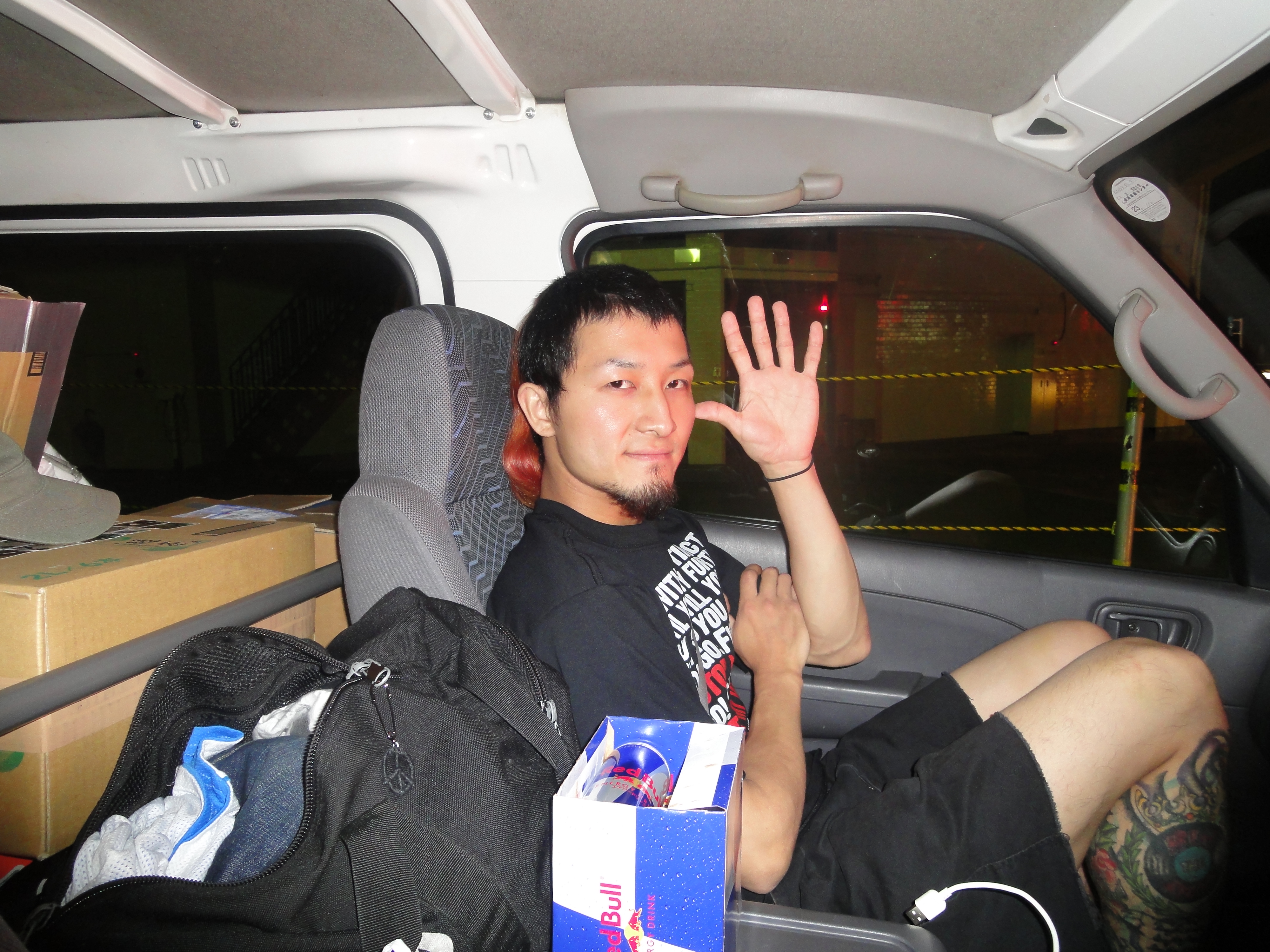 俺が書いてたブログを読んで直接連絡してくれました。 ちなみにチンはライブ会場ではなく、個人的な知り合い(携帯のアドレスに入ってる人達全員)に物資を募るメールをしてくれたそうです。 ■1日目(6月20日)