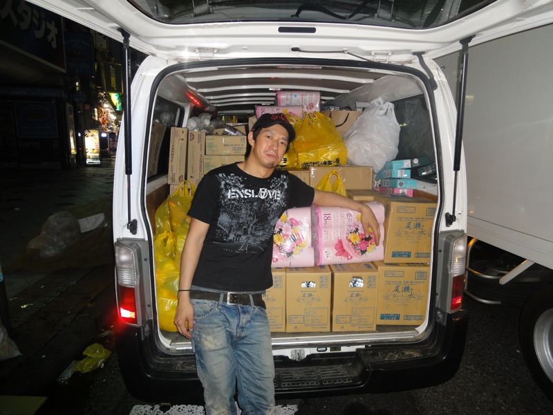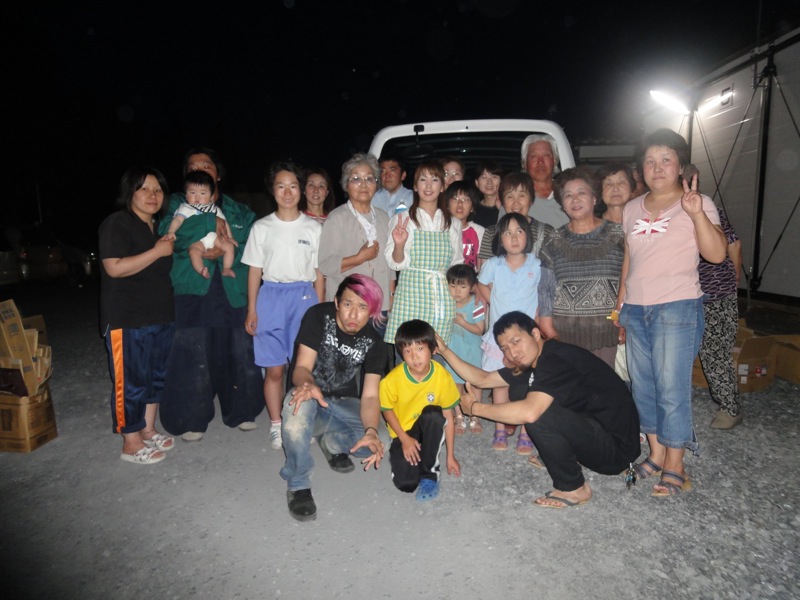 必死のチン君。(次から次に集まってくる人をみて、ゾンビゲームみたいだぜ!なんて不謹慎な事を言ってましたが一生懸命でしたw) 結果、3、4時間ぐらい掛けて物資を配り狂いました。 いつも物資をもらっても配る側ばっかりだったからうれしかったと言ってくれたそこの仮説のリーダーっぽいおばさんに言ってもらえたのが本当にうれしかったってチンは言ってました。 事前情報だとマスクや電池が欲しいとか色々と聞いてたけど、 きっと東京にいても入ってくるぐらいの情報だから色んな所から同じようなものが届いてるんじゃないかなって俺らは予測しました。 だから次に行く時は少し考えてから作戦を練り直していきたいって事を1日目から話をしていました。 結局現地に言って、現地の人の声を聞くのが一番確かなんだなって再確認できた。 続きはまた近いうちに書きます。