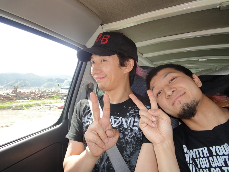 皆様からの協力を得て、MEANINGのライブ会場限定で売らせて頂いたチャリティーTシャツの売り上げを元に岩手県は陸前高田市に行って参りました。 非常に長いですが、読み終わって何かを感じたなら是非皆様の声を聴かせて下さい。 2回か3回に分けて書くつもりなので今回はとりあえず出発から初日までの流れを読んで、何か感じてもらえたらうれしいです。 「紹介」 今回の旅に同行してくれたのはTHINK AGAINのドラムのチンです。